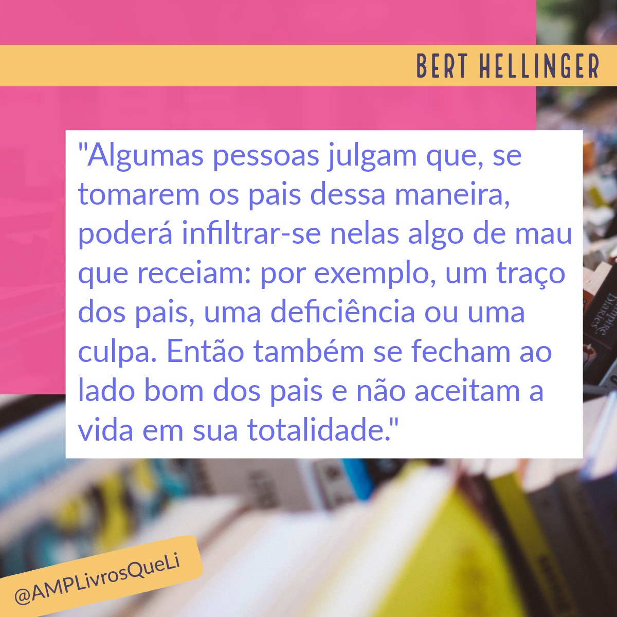 “Algumas pessoas julgam que, se tomarem os pais dessa maneira, poderá infiltrar-se nelas algo de mau que receiam: por exemplo, um traço dos pais, uma deficiência ou uma culpa. Então também se fecham ao lado bom dos pais e não aceitam a vida em sua totalidade.” (p. 94)