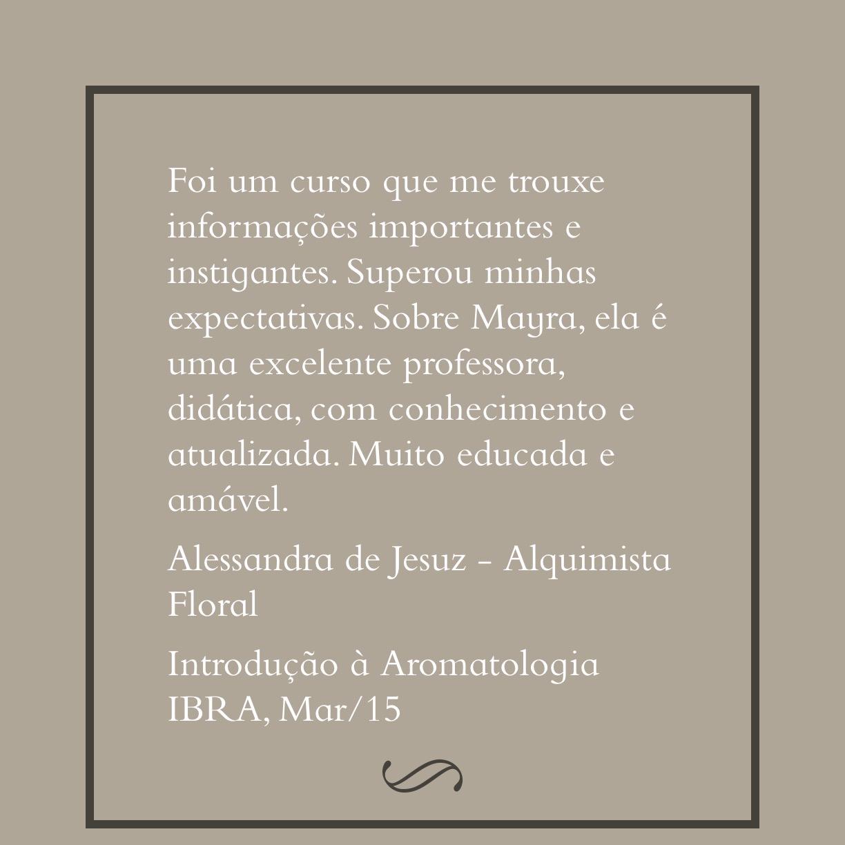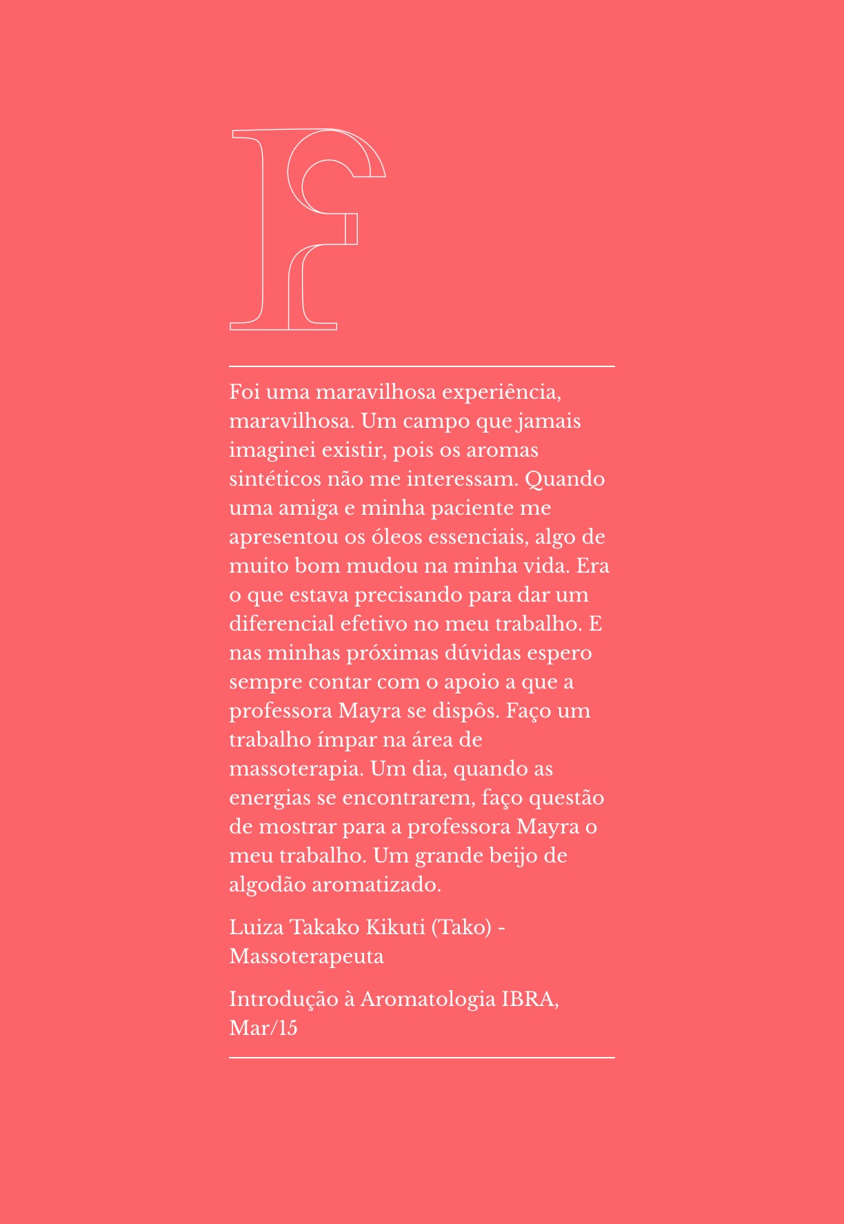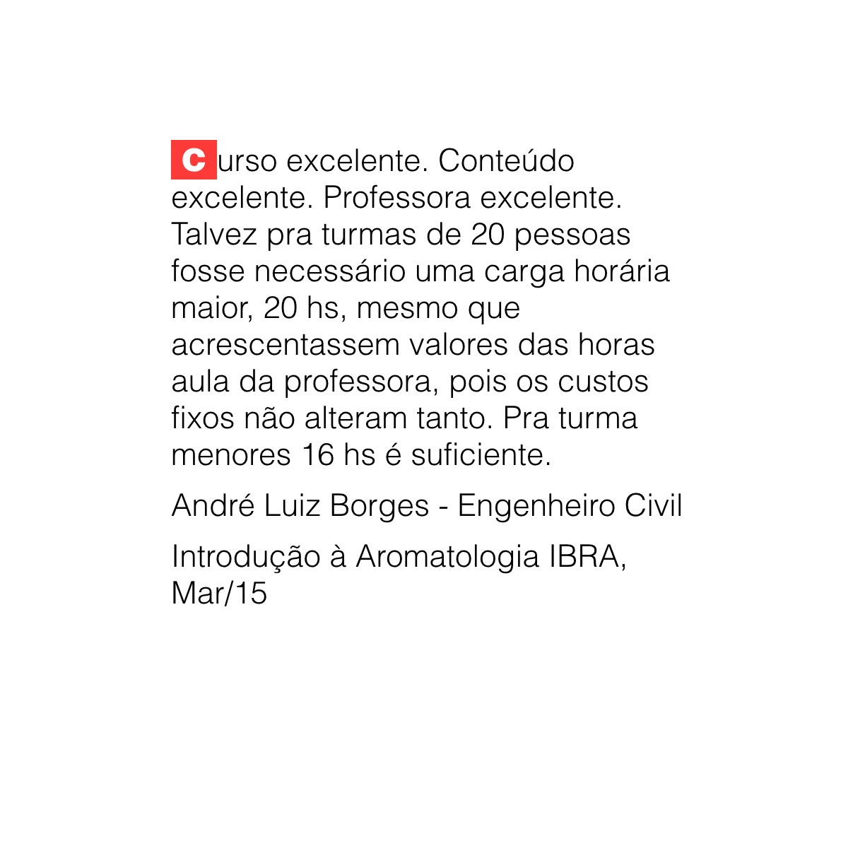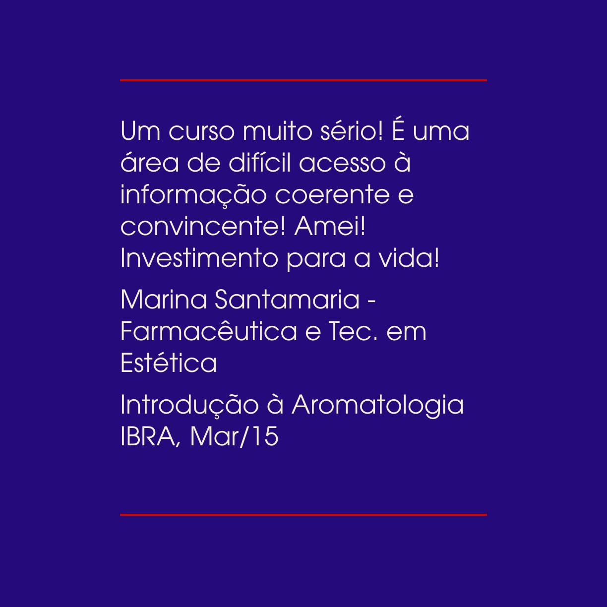 Depoimentos Veja depoimentos do curso Introdução à Aromatologia do IBRA, realizado em Curitiba em Março de 2015.