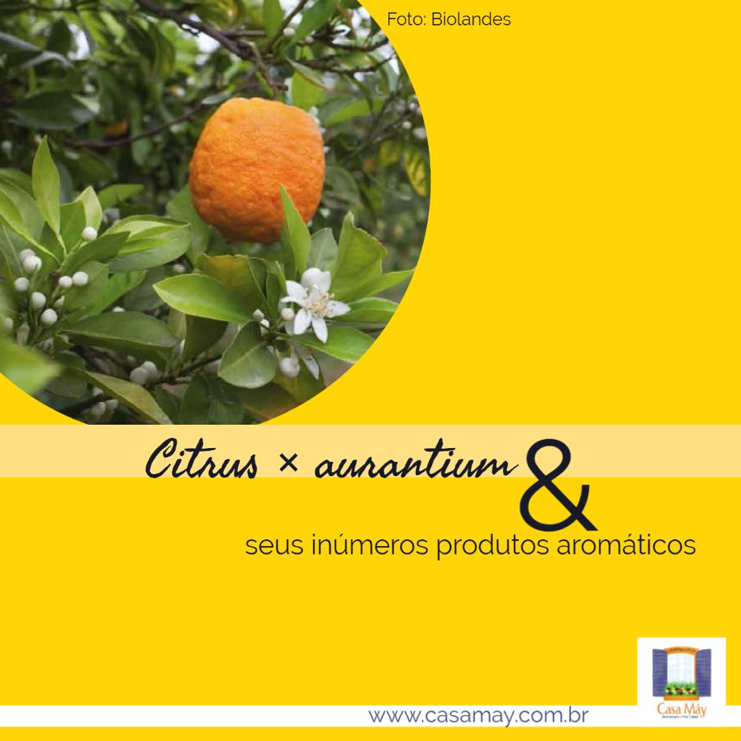 Citrus × aurantium (L.) e seus inúmeros produtos aromáticos.