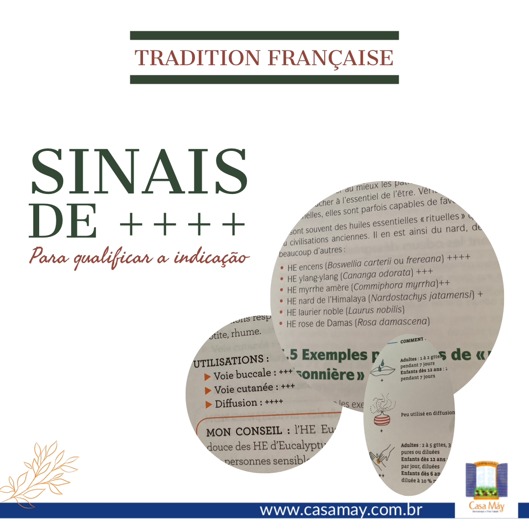 Em 1979, a casa Maloine publicou 3 tomos sob o título “Traité de Phytothérapie et d´Aromathérapie” de Paul Belaiche e lá os sinais de + já estavam presentes, inclusive no tomo de aromatogramas. Em 1990, o editor Roger Jollois publicou o livro “L´Aromathérapie Exactement” e nele também se observam os sinais. A tradição persiste hoje, em livros de autores recentes, como Françoise Couic-Marinier.